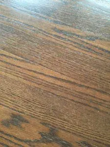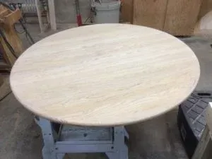 Recently, we had a customer contact us who really liked her chairs. They were multiple shades of grey, brown and tan and she wanted her Oak tabletop to match. The table was very nice but the brown stain didn’t go with her current chairs. We felt we could meet her request, so we began the process.
