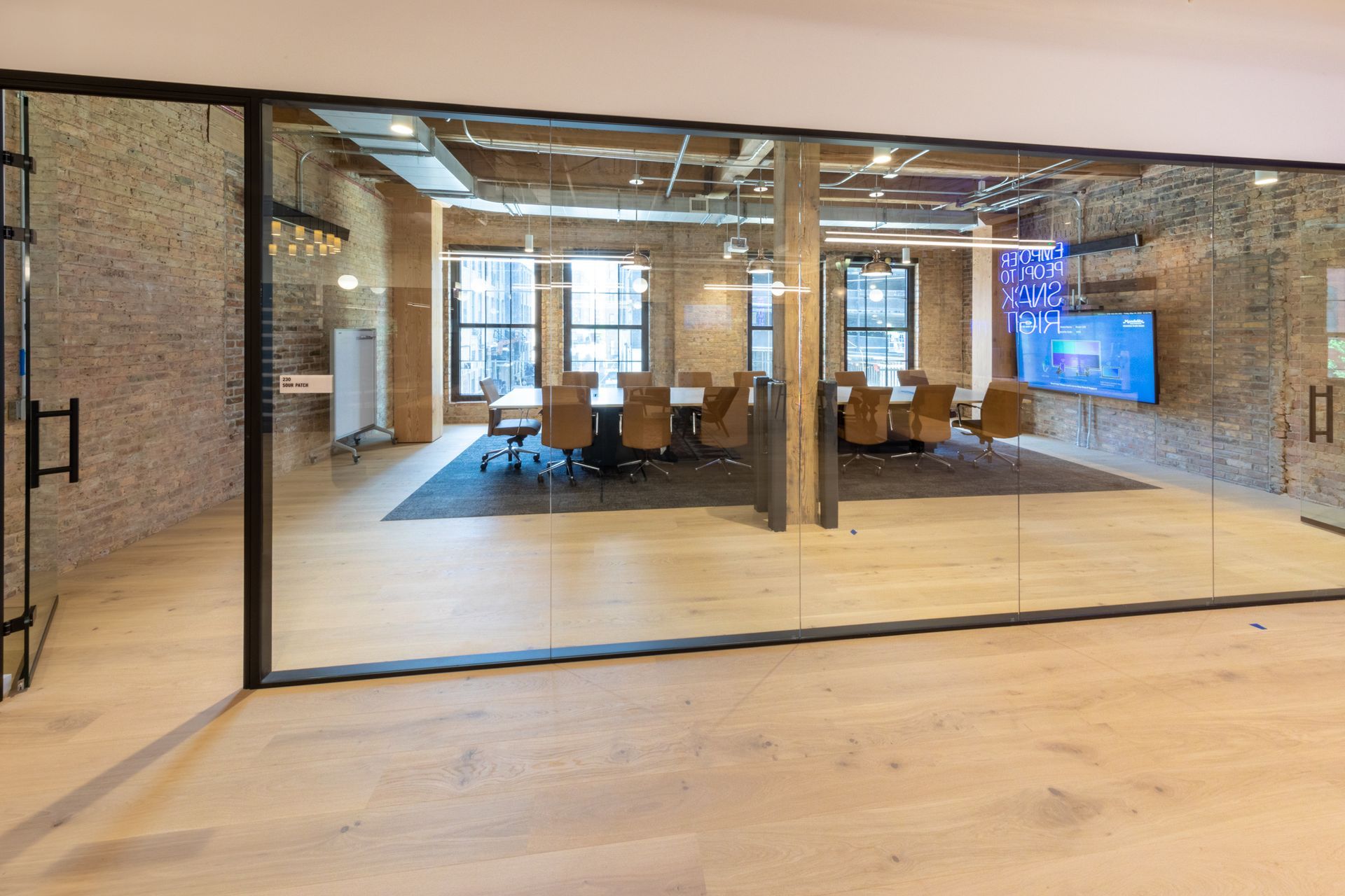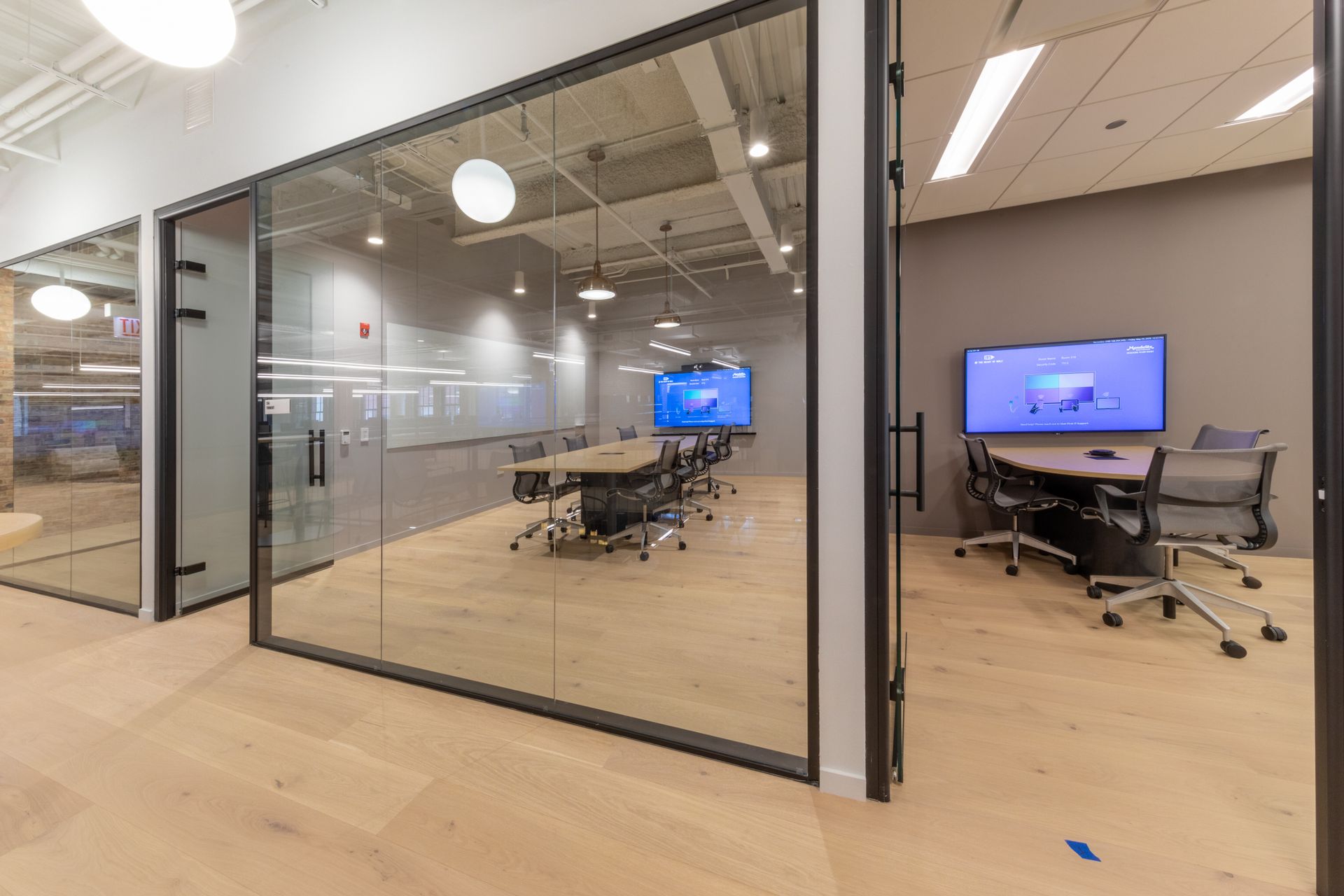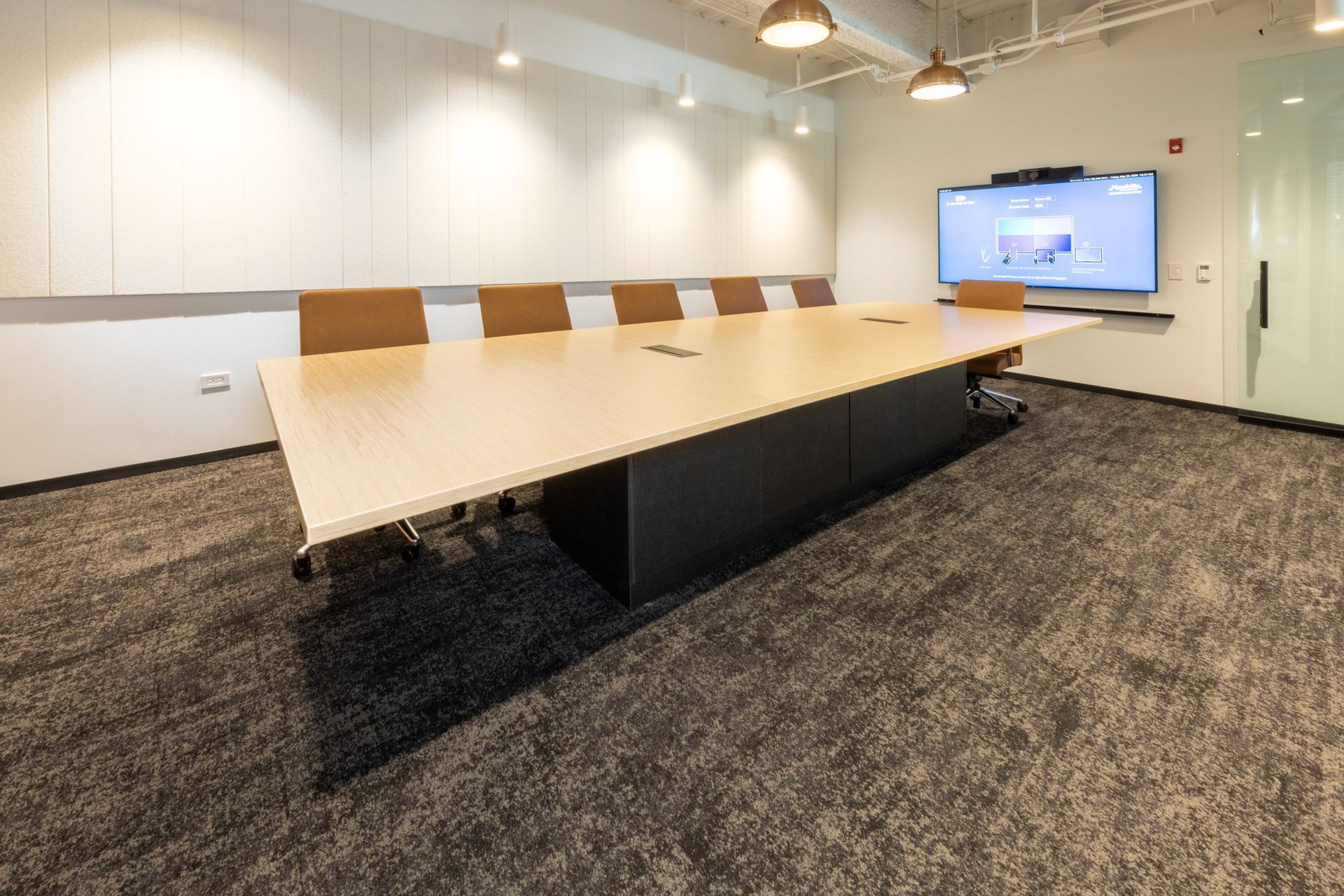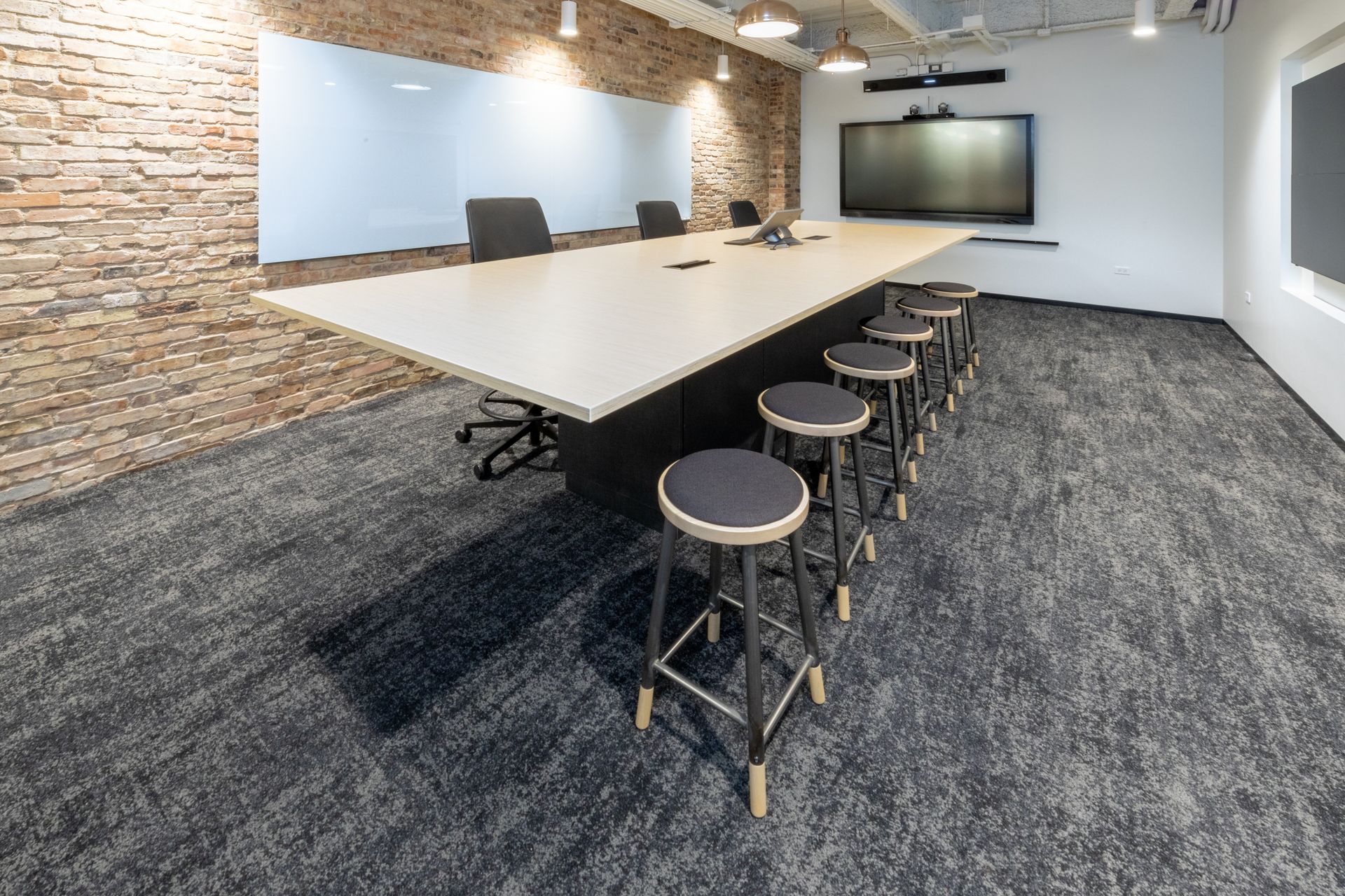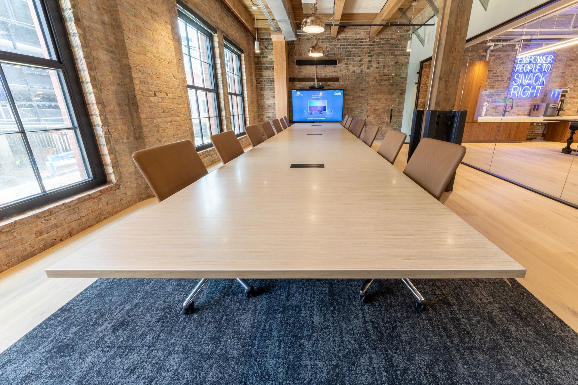 45 tables on a short timeline? We can do that! The new five-story Mondelez International global headquarters needed furniture to outfit their space – and a lot of it. The biggest was the 27 ft long conference table, an engineering feat. Built in sections to allow the pieces into the building’s elevators, the entire table is underpinned with a metal grid system.