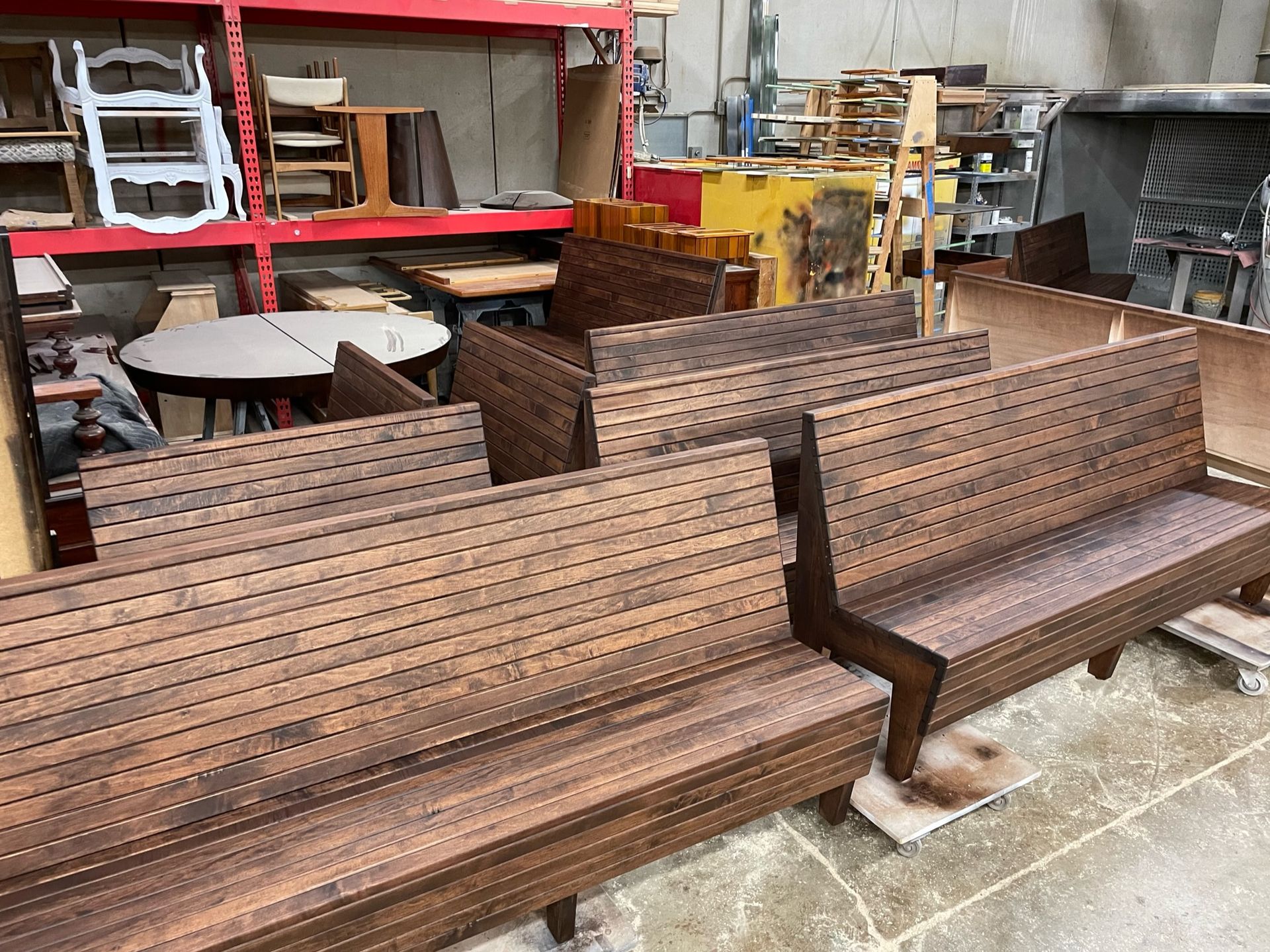 We were tasked with helping the designer to deliver on old world Italian bench that you would see around the 1920-1940's style. Not over the top gaudy Italian. After some research and collaboration we landed on a design. We had to scale the design and create a prototype. The resulting benches were sized appropriately for the several wall to wall applications. They were all hand fabricated with custom moldings from solid amps and stained a warm rich brown.